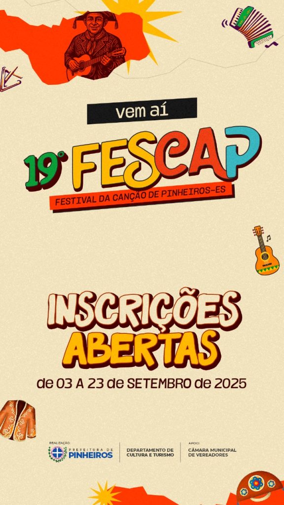 Link para Formulário de Inscrição e Regulamento | Via e-mail (fescap@pinheiros.es.gov.br) e mídias oficiais da Prefeitura de Pinheiros/ES |