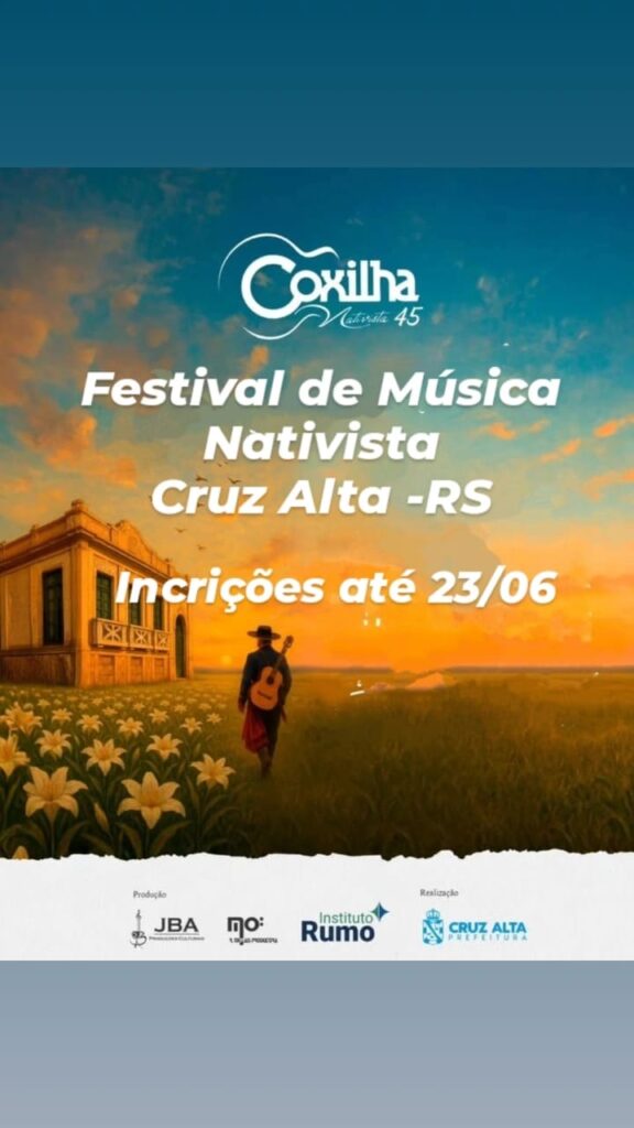 Ineditismo e Plágio | Músicas devem ser inéditas (não editadas, registradas, veiculadas ou comercializadas). Será exigida comprovação de residência ou naturalidade em Cruz Alta para fase local |