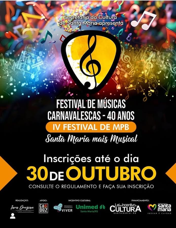 Regulamento disponibilizado pela Lei de Incentivo à Cultura de Santa Maria / Produtora Iara Druzian. |