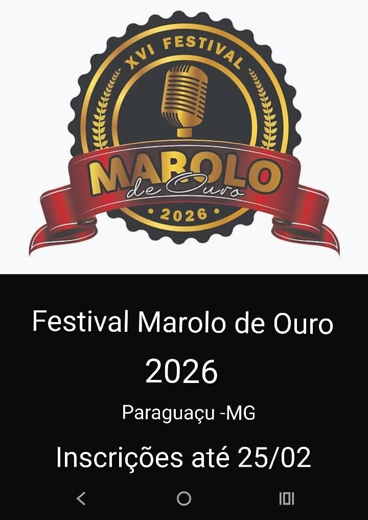| Link / Canal de Inscrição | Inscrição por e-mail: marolodeouro@gmail.com • Informações: www.paraguacu.mg.gov.br https://www.festivaisdobrasil.net/marolo-2026 |